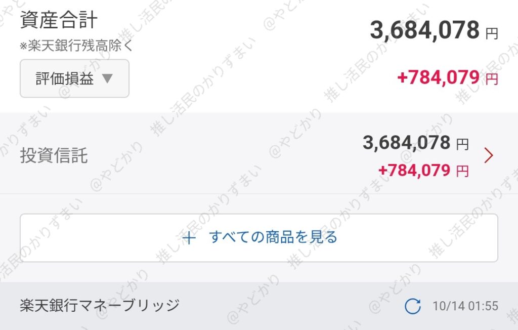 含み益 ÷ 時価(評価総額)=現在約 21%
