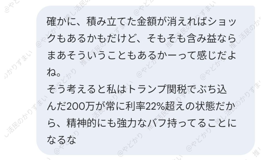 しかし、株価下落という局面では、投資家にとって“精神的な防御バフ”の役割を果たすのだと実感しています。