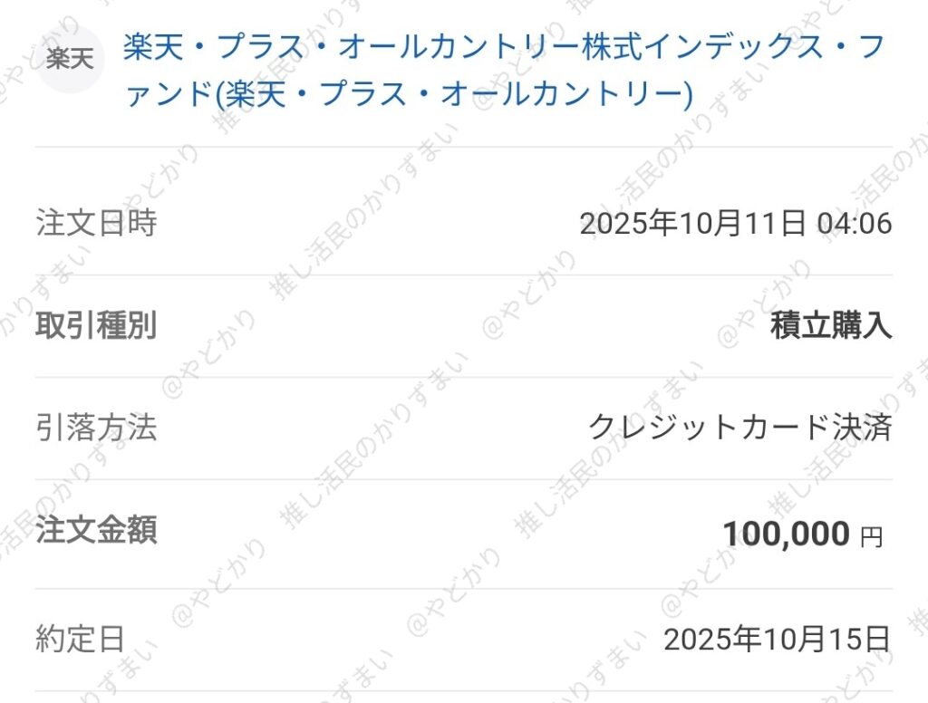 10月分クレカ積立の約定日、まさかの週明け。