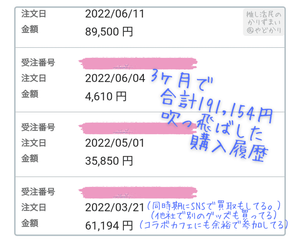 📷️3ヶ月で20万円近く吹っ飛ばす購入履歴の画像(時期は異なるため参考程度)(同時にSNSでの買取などもしています)