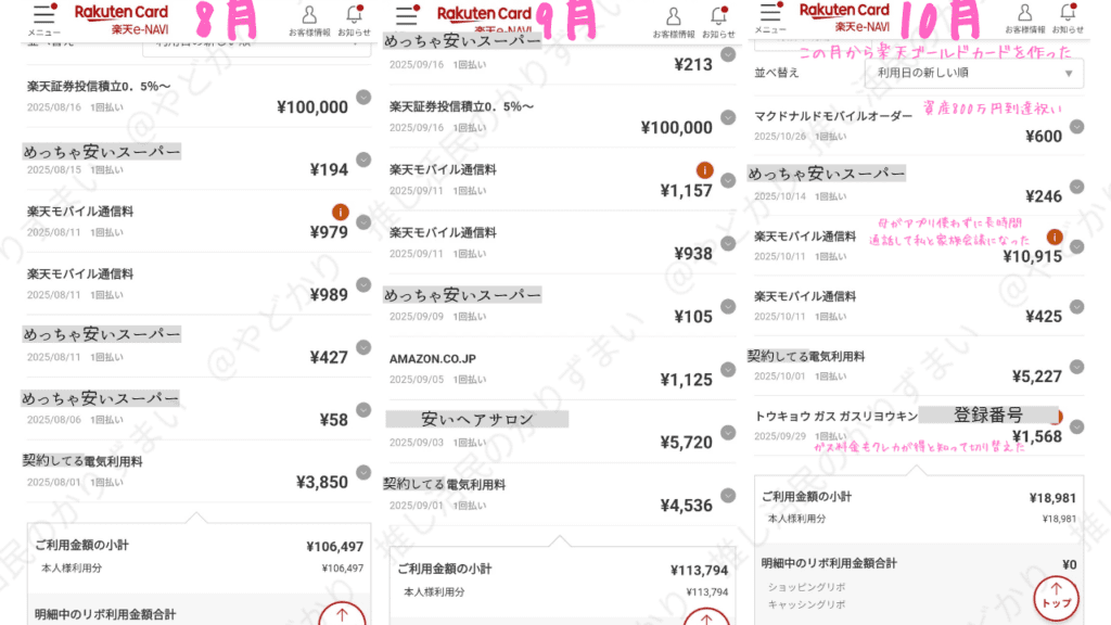 カードの利用履歴も高頻度で確認し、電気やガス料金もチェックを欠かしません。